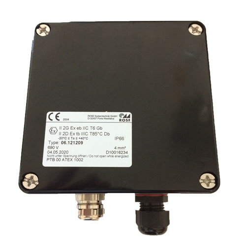 Heizmanschetten als Frostschutzbeheizung für Säuredunstabscheider SDA160, SDA250 und SDA315 (Für SDA90 und SDA125 keine Liefermöglichkeit). Mit selbstbegrenzendem Heizband 20W/m (bei +10°C); in Taschen /Glasseidengewebe unverrückbar verlegt; elektrischer An- und Abschluss in Heizmanschette verbaut; ohne Temperatursensor; für den Einsatz im explosionsgefährdeten Bereich der Zone 1/2 (Gas) und Zone 21/22 (Staub); Technische Daten: Betriebsspannung 230 VAC; Leistung für SDA160: 120 W; Leistung für SDA250: 200 W Leistung für SDA315: 250 W Max. zulässige Betriebstemperatur 65°C; Schutzart: IP65; Schutzklasse I Isolationsmaterial: Glasseidenmatte ca. 25 mm dick; Aussen- und Innenmantel mit elektrostatisch ableitfähigem PTFE-beschichteten schwarzem Glasseidengewebe; Befestigung mittels Klettverschlusses. Das selbstbegrenzende Heizband wird über eine Kabelverschraubung. Auf der Rückseite herausgeführt und in dem mitgelieferten EX-e-Anschlusskasten Typ WZX188EX mittels Kaltanschlussset angeschlossen; Schutzart: IP65; Schutzklasse I Anschlussleitung mit Aderendhülsen LL= 2 m, ohne Stecker. EG-Baumusterprüfbescheinigung: Heizband SIRA 17 ATEX 3335U, SIRA 18 ATEX 3038X Ex-Kennzeichnung: Gas EX II 2G Ex 60079-30-1 IIC T6 Gb, Staub EX II 2D Ex 60079-30-1 IIIC T85°C Db Inkl. Ex-e Anschlusskasten Typ WZX188EX für die Verlängerung der Netz Anschlussleitungen im Ex-Bereich Technische Daten: Nennspannung bis 400 VAC Schutzart: IP66 nach EN 60529 Ausstattung: 2 Verschraubungen und 2 Blindstopfen M20x1,5 für Kabeldurchmesser 7-12 mm, 6 Reihenklemmen (4 mm2) für max. 3 Beheizungen Abmessungen: 120 x 122x 91 mm Material: glasfaserverstärkter Polyester mit Graphitzusatz mit einem Oberflächenwiderstand < 10 hoch 9 Ohm EG-Baumusterprüfbescheinigung: PTB 00 ATEX 1002 (9.Ergänzung) Ex-Kennzeichnung: Gas EX II 2G Ex d e ia (ia) mb IIC T6, T5, T4 Gb Staub EX II 2D Ex tb IIIC T85°C, T100°C, T135°C Db Umgebungstemperatur: -20°C </= Ta </= +40°C Wichtige Hinweise: - Verschraubungen müssen dicht abschließen - Dichtung im Gehäuse muss funktionsfähig sein - Anzugsdrehmoment Reihenklemme (UK 5) 0,6 0,8 Nm Ex- Produkte sind nicht in ihrer Gesamtheit nach ATEX zertifizierte Produkte (keine Systemzulassung). Es handelt sich um elektrische Begleitheizungen im Sinne der EN 60079-30-1 für den Einsatz im vorgenanntenEx-Bereich, die aus einzeln zugelassenen elektrischen Komponenten für die jeweils eine eigene EG-Baumusterprüfbescheinigung vorliegt, bestehen. Es obliegt in der Verantwortung des Betreibers die Eignung der Ex-Produkte vor Ort in seiner Anlage zu gewährleisten. Nichteinhaltung der in der Montage- und Betriebsanleitung aufgeführten Sicherheitshinweise, sowie Nichtbeachtung der Vorgaben des Herstellers kann zu Schäden führen und es erlischt die Gewährleistung. |