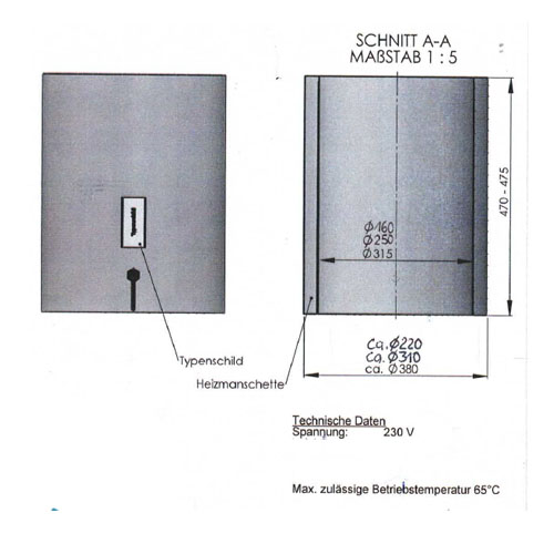 Heizmanschette als Frostschutzbeheizung für Säuredunstabscheider