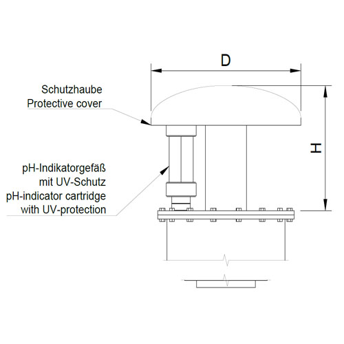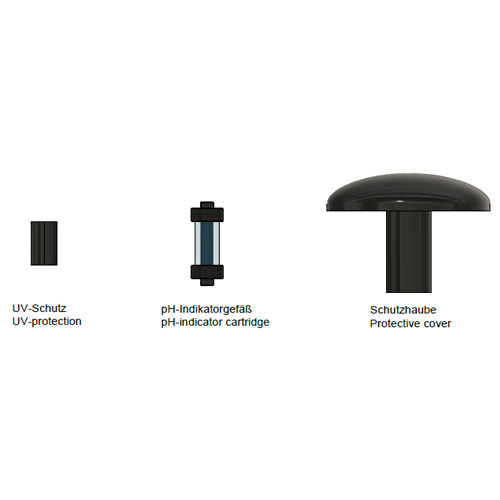 Der pH- Indikator wird für die Aussenaufstellung im Set mit zusätzlichen Anbauteilen ausgerüstet: - Anbauteil: UV- Schutzrohr aus PE-el, geschlitzt für das Sichtrohr - Anbauteil: Schutzhaube aus PE-el für ATEX-pH-Indikatorgefäss Die pH-Indikatoren für säurehaltige Abluft sind geeignet und ausgelegt für ATEX-Chemikaliendunstabscheider der Typenreihe SDA90-el, SDA90-1L-el, SDA125-el, SDA160-el, SDA250-el und SDA315-el. - Sofort aufschraubbar und betriebsbereit - Einbau vertikal - Deckel, pH- Indikatorgefäss und Schutzhaube abschraubbar - pH-Indikator-Anschluss G1 Aussengewinde - Sichtrohr aus Borosilikatglas d65 mm Höhe: 50 mm - Aussenaufstellung Ist die Filterkapazität des Säuredunstabscheiders verbraucht, reagiert das innenliegende Indikatorvlies im transparenten pH-Indikatorgefäss aus Borosilikatglas mit einem Farbumschlag. Bei Einsatz mit säurehaltiger Abluft erfolgt der Farbumschlag von blau nach gelb, bei Erreichen des pH-Wertes von 4,6. Die Sättigung der PURO-Granulate wird unmittelbar durch den Farbumschlag im pH-Indikatorvlies optisch angezeigt. Nach einer Reaktion durch Farbumschlag muss das Indikatorvlies im pH-Indikatorgefäss entsorgt und durch ein neues Vlies ersetzt werden. Bei Auftsellung mit Frostgefahr, Heizmanschetten-ATEX für SDA 160 - SDA315 einsetzen (siehe 3.Unterkategorie) |