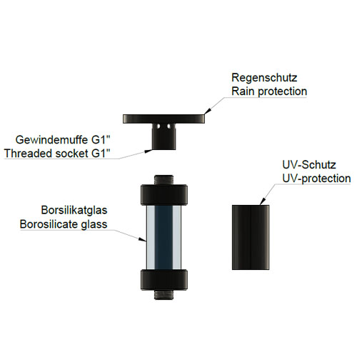 - Anbauteil: UV- Schutzrohr aus PE-el, geschlitzt für das Sichtrohr