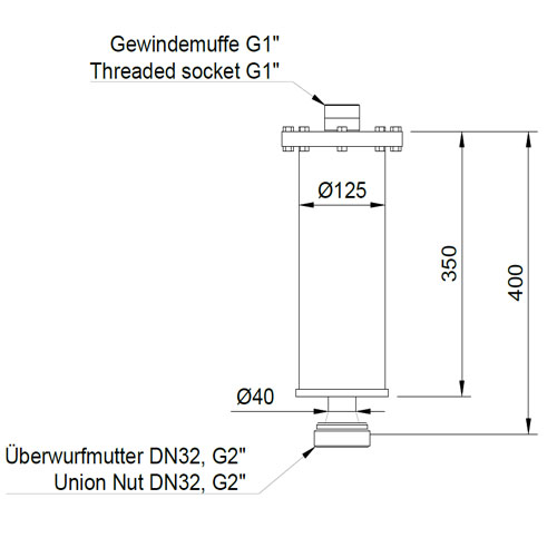 - Anschluss: Überwurfmutter DN32 (d=40) mit G 2" Innengewinde