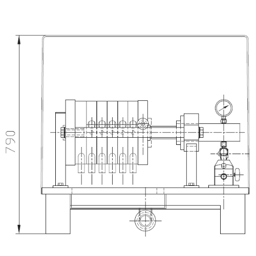 Unsere Laborfilterpressen bieten einen maximal zulässigen Filtrationsdruck von 12 bar (15 bar) und erfordern einen Mindestschließdruck von 405 bar bei 12 bar Filtrationsdruck. Der maximal zulässige Schließdruck beträgt 500 bar.