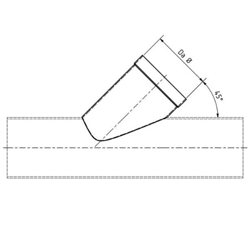 | - PVC Sattelstutzen 45° mit Muffe - Kunststoff-Formteil rund mit Innenliegendem Anschlag zur Verbindung von Rohren in einer Abluftanlage mittels Schweißverfahren. Zum Aufschweißen auf Lüftungsrohr - Muffeninnendurchmesser in Anlehnung an die DIN 8062, aus Halbzeugen gefertigt; - Negativer Überdruck auf Anfrage nach mechanischer, chemischer und thermischer Belastung |