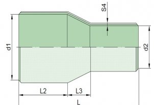 UP-GF Reduzierstück DIN 16966, Form C2, Rohrtyp D, mit Laminatende, PN 10