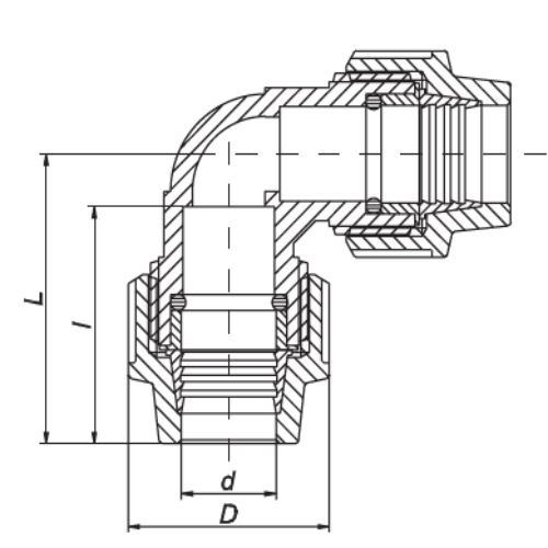 PP Klemmverbinder Typ UNIDELTA für PE Rohre, Winkel 90° mit Abagng seitlich