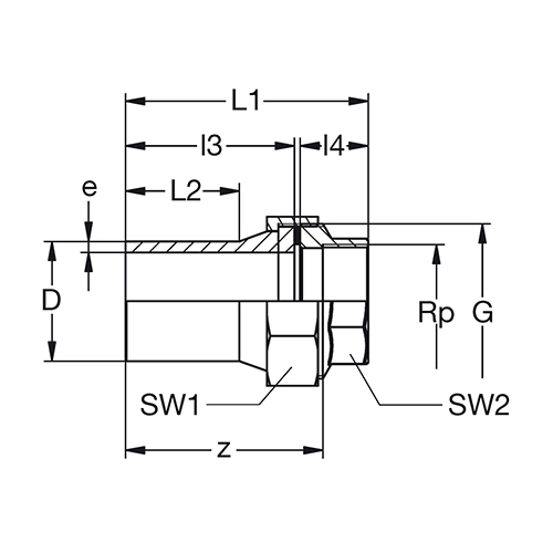 PE100-V2A Ü-Verschraubung lang IG-zyl Flachdichtring-EPDM SDR11