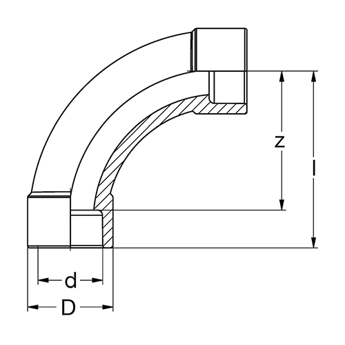 Gespritzte Formteile, für die Heizelement-Muffen-Schweißung, ohne Verschwächungsbeiwerte. Werkstoff PP-RCT (Polypropylen Random-Copolymer Temperature resistant) mit modifizierter Kristallstruktur (beta nukleiert) und erhöhter Temperaturbeständigkeit, Borealis RA7050GN, Farbe RAL 6024 Verkehrsgrün. Das Material entspricht den Anforderungen der aktuellen KTW-Leitlinie des Umwelt-bundesamtes (UBA). Geometrische Eigenschaften Durchmesser und Wanddicke der Muffen entsprechend DIN EN ISO 15874.Toleranzen bei den Z-Maßangaben sind abhängig von der Dimension. Bis d/D 160 = +/- 3 mm. Ab d/D 180 = +/- 10 mm. Betriebsdruck Der Betriebsdruck richtet sich üblicherweise nach dem eingesetzten Rohr. Grundsätzlich sind alle Standard-Formteile für die angebotenen Rohre geeignet. Ausführung Geeignet für Heizelement-Muffen-Schweißung nach DVS Richtlinie 2207. Schweiß- Geräte und Schweiß-Werkzeuge sollten der DVS Richtlinie 2208 entsprechen. Zertifizierung B-R Formteile unterliegen regelmäßigen internen und externen Qualitätskontrollen. Die Formteile erfüllen die Anforderungen der DIN Certco Richtlinie ZP 10.25.1 und NSF14 + 61. |