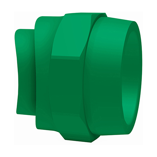 PP-RCT (Polypropylen Random-Copolymer Temperature resistant) mit modifizierter Kristallstruktur (beta nukleiert) und erhöhter Temperaturbeständigkeit, Borealis RA7050GN, Farbe RAL 6024 Verkehrsgrün. Das Material entspricht den Anforderungen der aktuellen KTW-Leitlinie des Umwelt-bundesamtes (UBA).