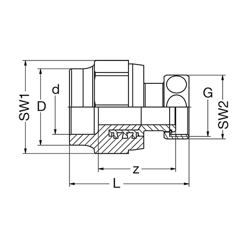 PP-RCT-Rotguss A-Verschraubung IG-zyl für Armaturen + Wasserzähler mit Flachdichtring-EPDM grü