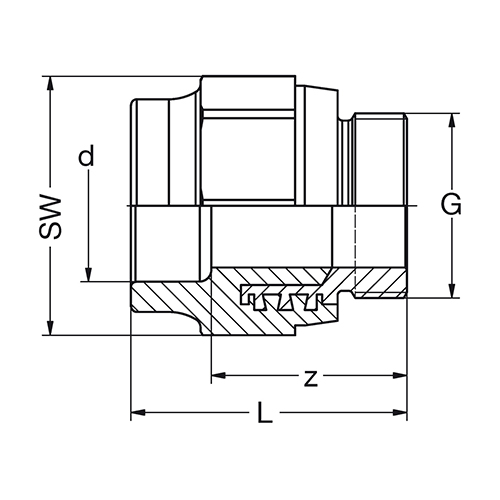 PP-RCT-Rotguss Verschraubung Schraubteil flachdichtend grün