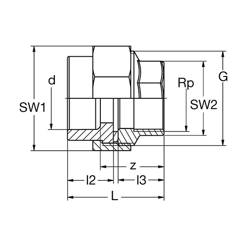 PP-RCT-V2A Ü-Verschraubung IG-zyl Flachdichtring-EPDM 20°C/1.0MPa grün