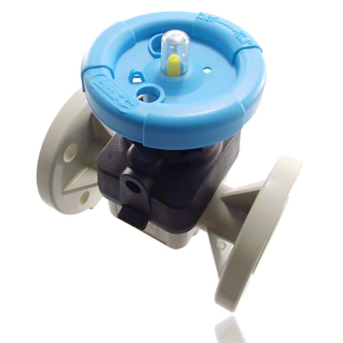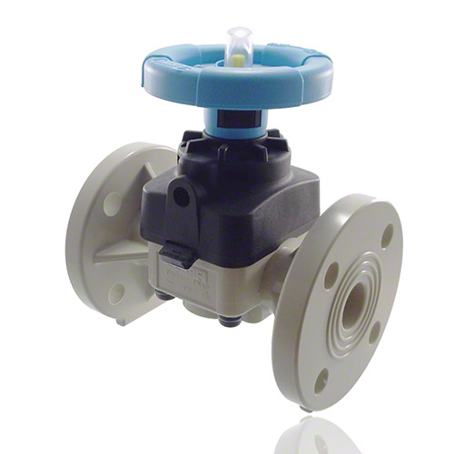 Membranventil PP-H, DIN-Flansche, PTFE = blaues Handrad