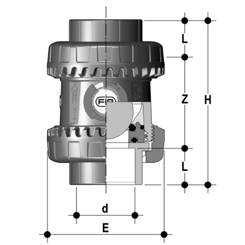 | -Anschluss: beidseitig Klebemuffe -Dichtung: EPDM -Durchfluss nur in eine Richtung möglich -Einsatzbereich: Für Flüssigkeiten mit Dichte kleiner 1,37g/cm³ -Mindestdruck für tropfdichten Abschluss 0,2bar bei waagrechter Stellung -kundenspezifisch kennzeichenbar mit "Labelling System" (z.B.Ihr Firmenlogo) |
